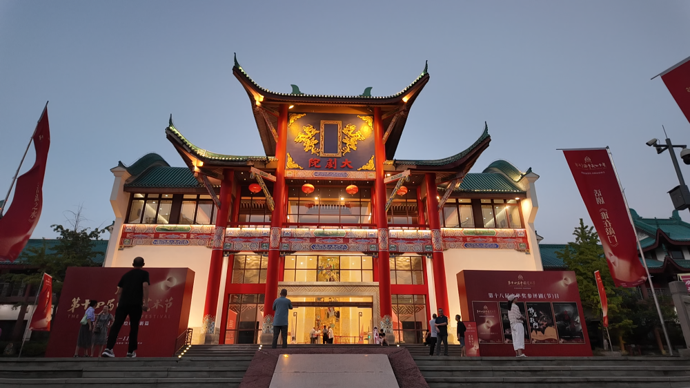 ▲夜幕下的川剧艺术中心,陆续有观众进场观演。受访者供图