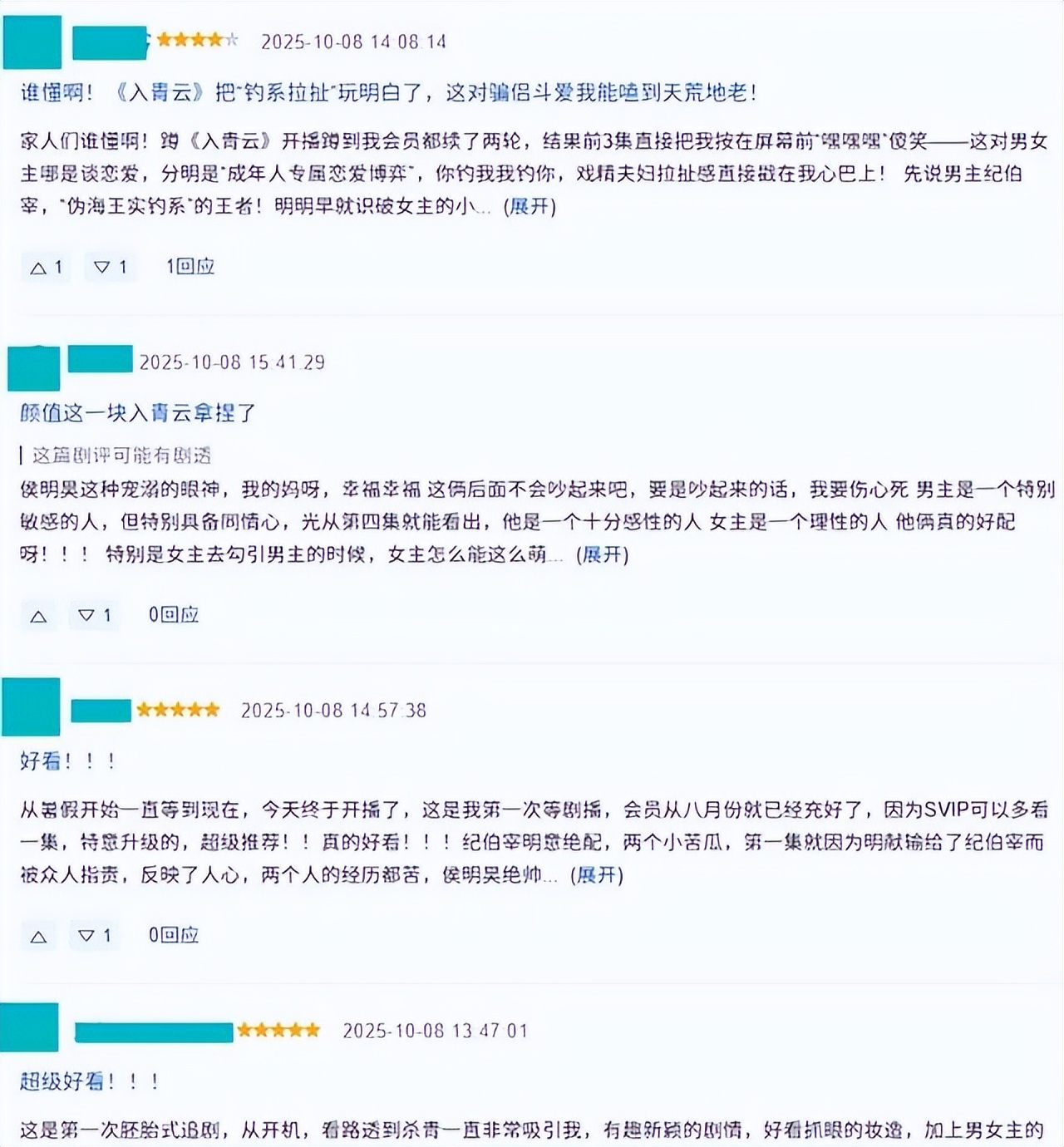 为什么这么猛?一方面,优酷的宣发节奏抓得准,定档前一周就放出全阵容海报和预告片,九月底的“骗侣斗爱”版预告直接戳中观众的G点,播放量破5000万。另一方面,剧集类型对路,现在的年轻观众腻歪了甜宠拉郎配,更喜欢带点智斗和权谋的仙侠。《入青云》正好卡在这个点上,开局几集的节奏紧凑,每集结尾都留悬念,观众忍不住刷屏讨论。豆瓣小组里,276条讨论帖里好评占了大头,有人直说“终于等到一部不水不拖的仙侠了”。对比同期其他剧,比如某部热度刚破2000万就凉凉的,这部剧的互动量是人家的两倍,弹幕密度每分钟200条,高峰期翻倍。